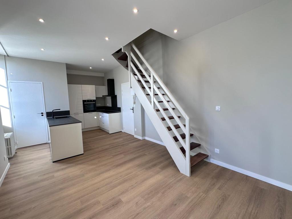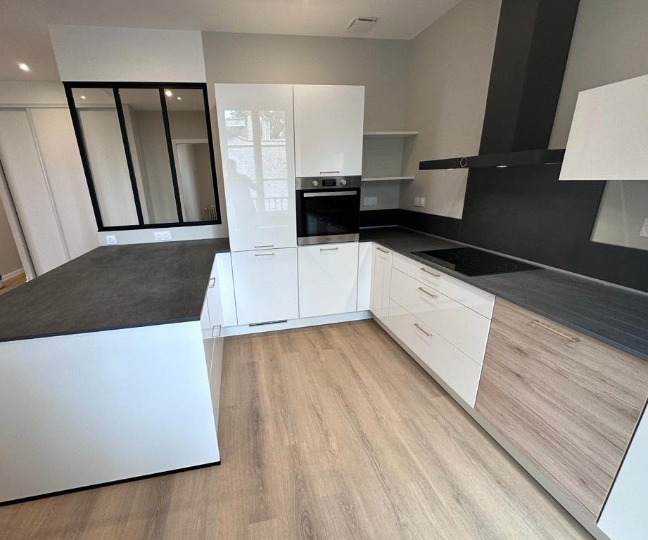 Ici, le premier appartement a bénéficié d’une rénovation intérieure complète : remplacement de la cuisine, modernisation des matériaux, mise aux normes électriques et finitions soignées pour un résultat contemporain et fonctionnel.