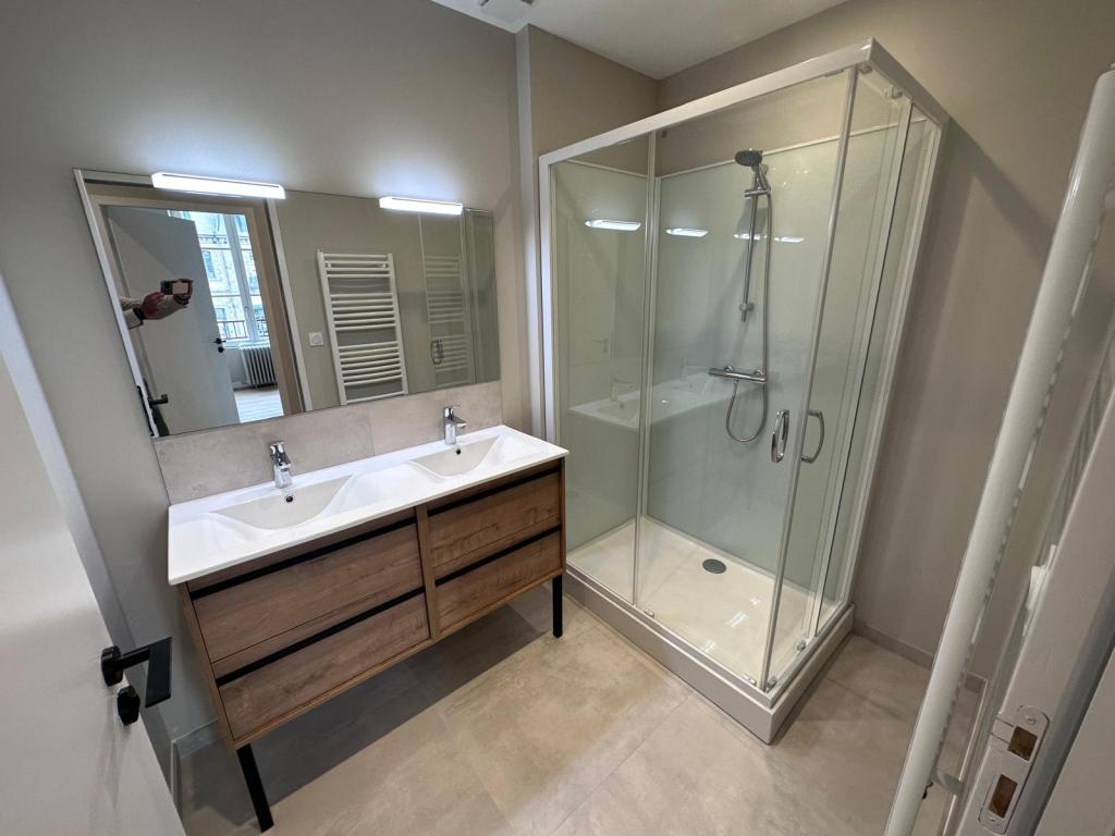 Le second appartement a été rénové dans un esprit sobre et lumineux, avec une attention portée au choix des matériaux et à la qualité des finitions. L’ensemble des revêtements, équipements et menuiseries intérieures a été repris pour offrir un cadre de vie moderne, confortable et prêt à l’emploi.